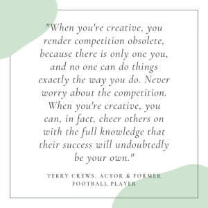 The truth is that you need the success of everyone in your field in oder to achieve your own success. Creativity operates differently. You work hard because you’re inspired to, not because you have to. Work becomes fun, and you have energy for days because this life is not a “young man’s game.” It is an “inspired person’s game.” The keys belong to whoever is inspired, and no specific age, sex, gender, or cultural background has a monopoly on inspiration. When you’re creative, you render competition obsolete, because there is only one you, and no one can do things exactly the way you do. Never worry about the competition. When you’re creative, you can, in fact, cheer others on with the full knowledge that their success will undoubtedly be your own.